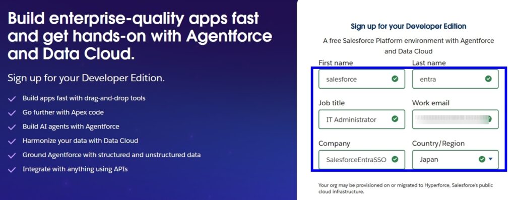 手順1:Salesforce Developer Edition のテナント作成